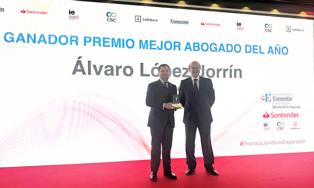 The firm has received three awards at the 10th Expansión Legal Awards ceremony, held yesterday in Madrid. Specifically, Álvaro López-Jorrín, partner and co-head of the corporate/commercial law practice since 2013, was singled out as Lawyer of the Year. Specializing in corporate law and structural modifications to companies, Álvaro has extensive experience in mergers and acquisitions of both private and listed companies.